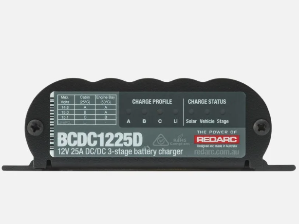 Get the next generation in REDARC DC to DC charging technology with the REDARC BCDC1225D In-vehicle Dual Battery Charger. It’s a 12 volt, 25A in-vehicle DC-DC battery charger designed to charge your secondary battery banks to 100% state of charge while on the move.* It is solar ready and suitable for many battery types including lithium, AGM, GEL, standard lead acid and calcium.